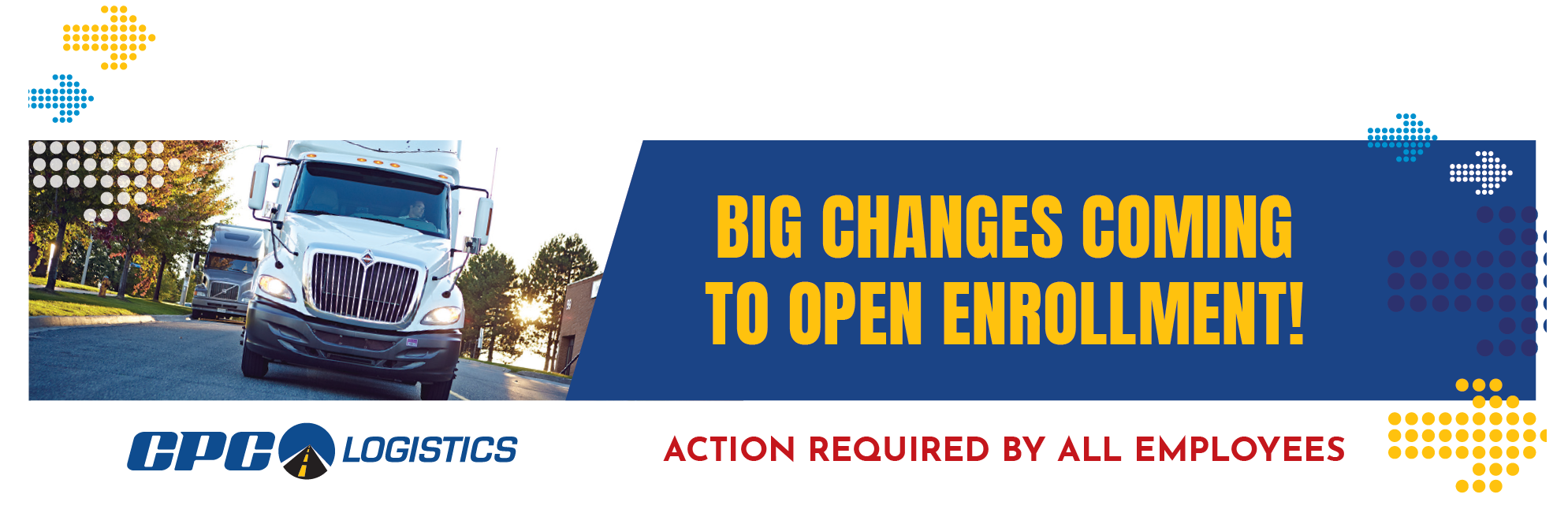 CPC Logistics is excited to announce a transition to electronic communication for online Open Enrollment selections for 2026. All Open Enrollment materials will now be delivered by email. To make sure your contact information is up to date, refer to the brochure mailed to you or the email you received. If incorrect, please call a benefit specialist at (800) 941-7089, or email Benefits@CPCLogistics.com to change your email address prior to August 28, 2025.